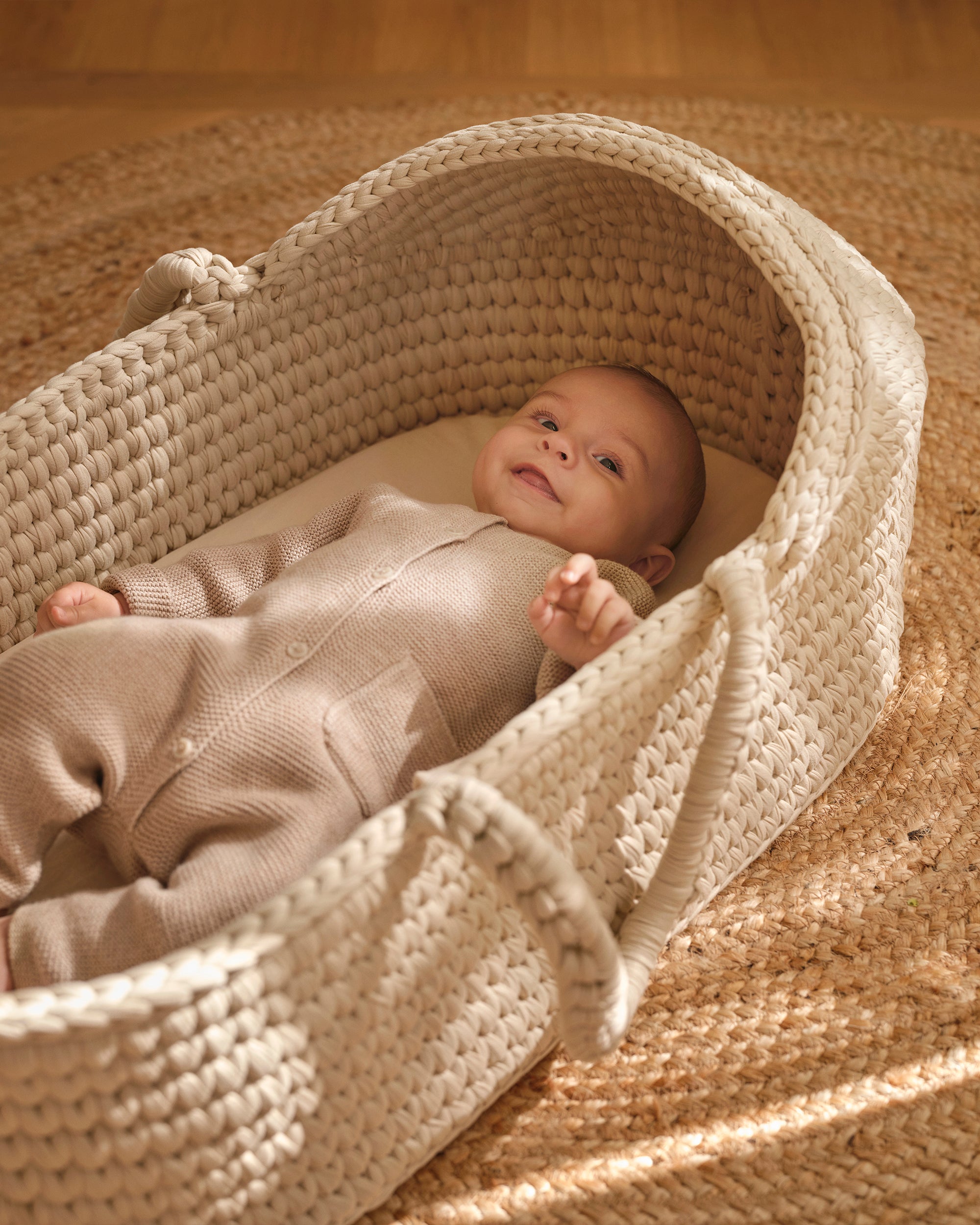 Crafted with Scandinavian design in mind, this carry cot combines practicality with timeless style. Its sturdy handles make it easy to carry around the house, bring along wherever you go, or place next to your bed, giving your little one a familiar and comfortable place to rest while allowing you to check on them easily throughout their sleep. Entirely handwoven from breathable crochet material, it promotes airflow to help keep your baby comfortable and supports natural temperature regulation.