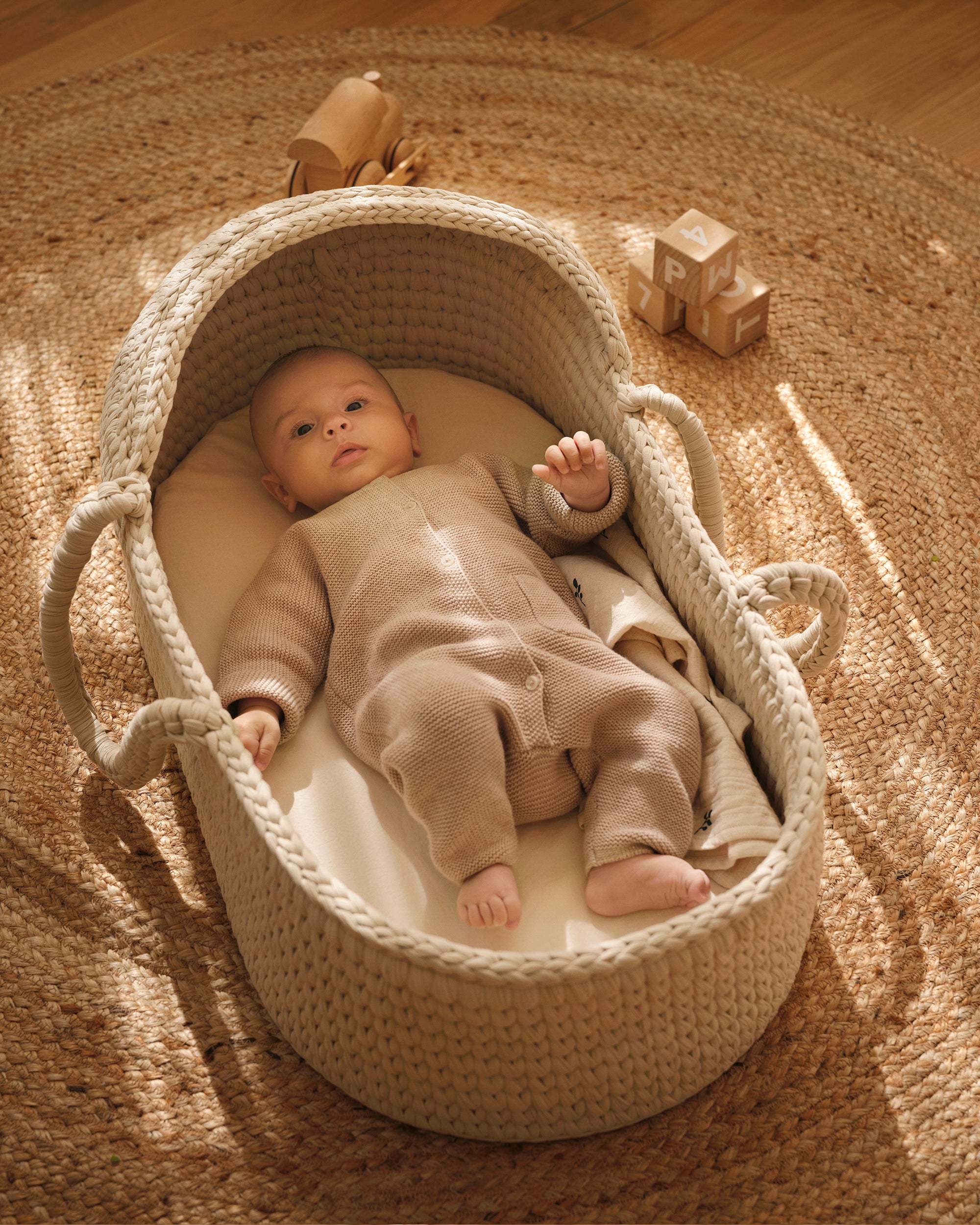 Keep your baby close and comfortable wherever you are with our handmade crocheted Moses basket.